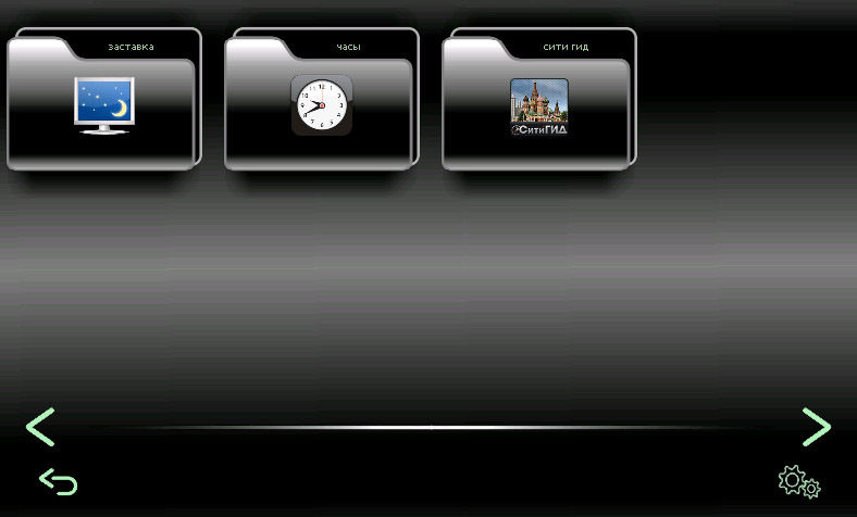 В этом окне вы заметите, что там есть кнопка запуска штатной программы навигации СитиГид. Также добавлены еще две кнопки для запуска заставок. В целом разница между этими заставками минимальна — на одной есть часы, а на второй нет.