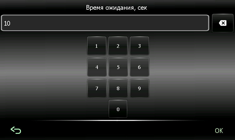 8. После выбора месторасположения кнопки "Назад" произойдет возврат к окну, описанному в п.3 и выбираем время ожидания перед запуском программы. Время задается в секундах. Для этого нажимаем в область поля с наименованием "Время ожидания, сек". По умолчанию поле имеет значение 5 сек. После ввода значения нажимаем "ОК".