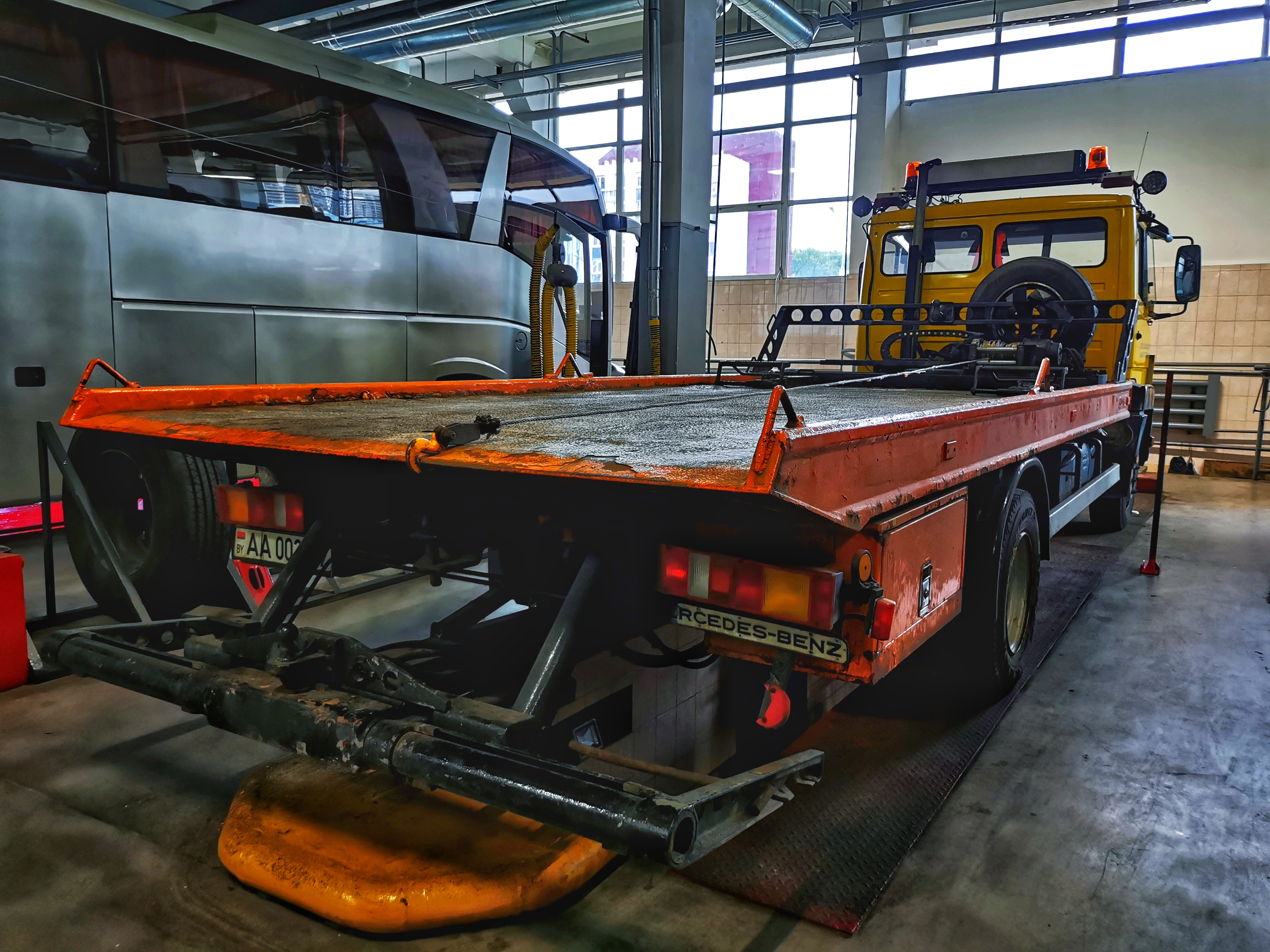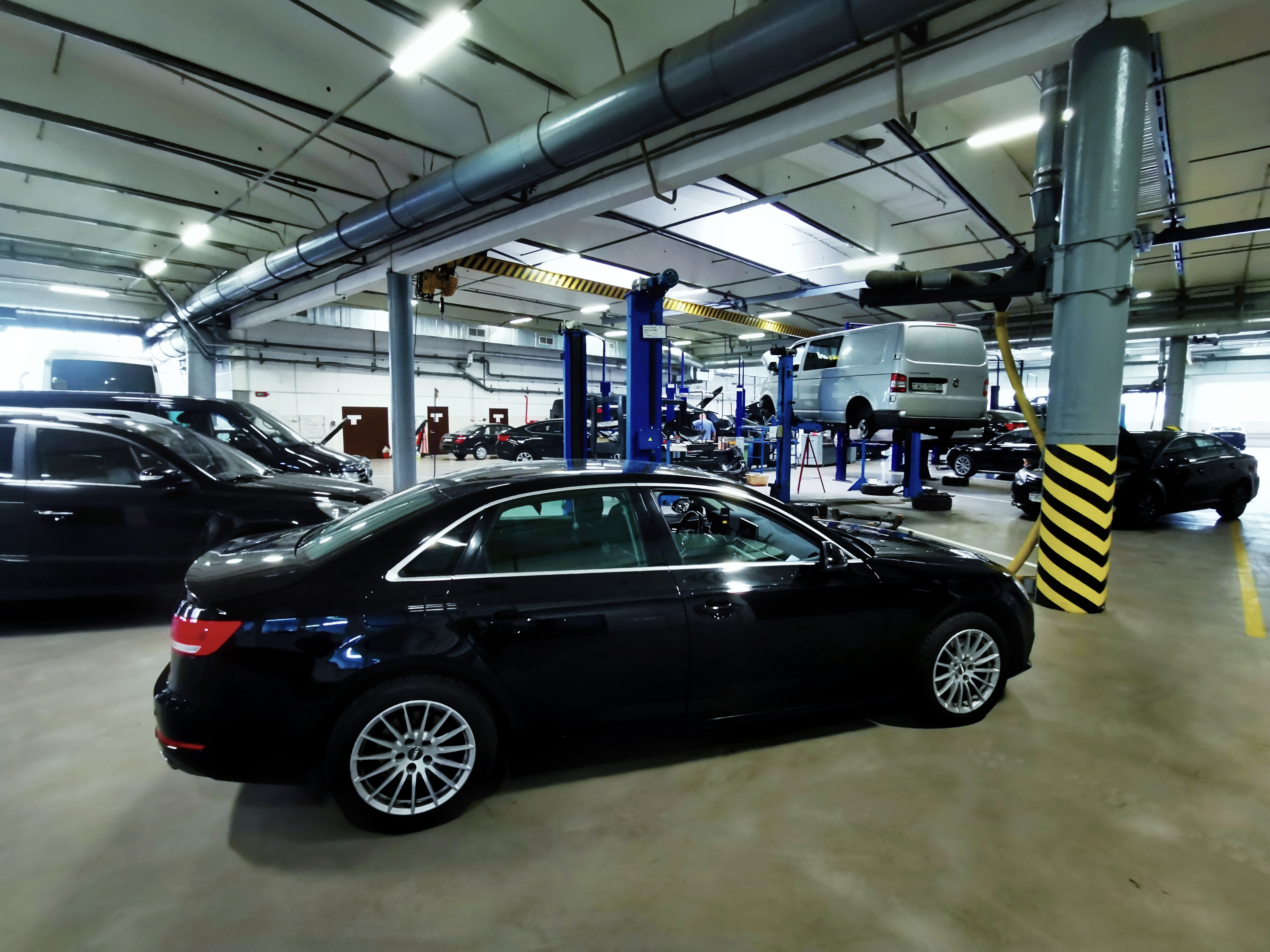 Изначально открывается слесарный участок, оснащенный 20 подъемниками, 5 подъемниками для грузовых автомобилей. Масса автомобилей с номерами серии MI, красные дипломатические номера.