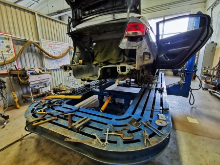 Кузовные работы проводятся на двух участках кузовного цеха. На первом участке установлено три подъемника, на которых происходит разбор автомобиля, при необходимости – сварочные работы. Второй участок оснащен стапелем, который позволяет устранять сложные повреждения кузова.