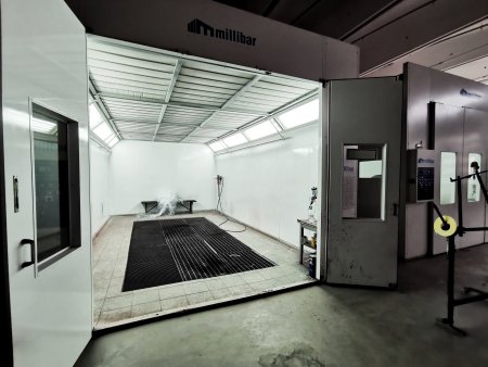 В самом покрасочном цехе установлено две современные покрасочные камеры, которые предназначены для своевременной и беспрепятственной просушки ЛКП автомобиля при проведении малярных работ.