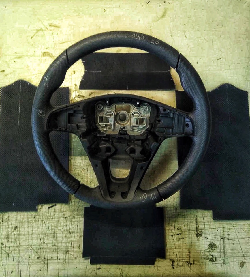 Вернемся к нашему мини-тюнингу – перетяжке руля. Сняли руль, выбрали материал и дизайн, а теперь отдаем все в руки профессионалам.
