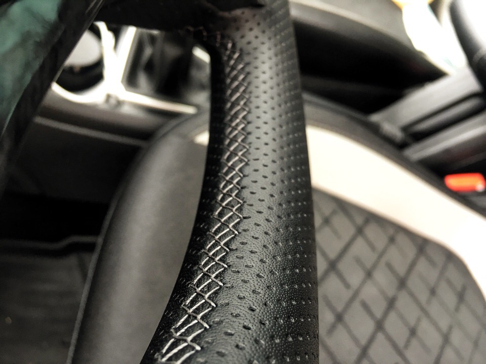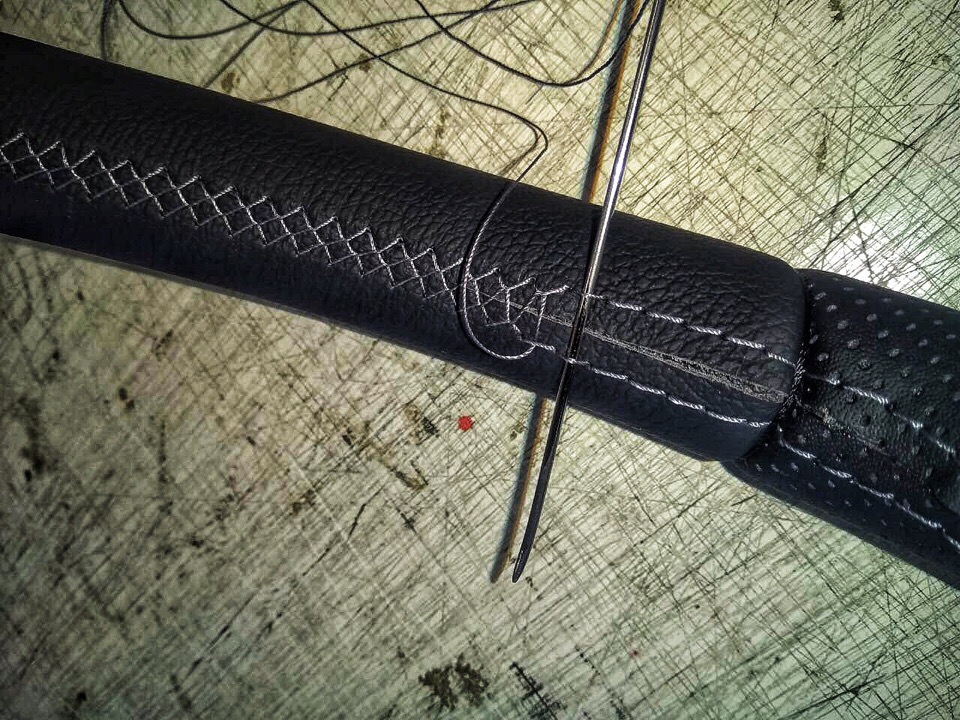 После завершения примерки оплетки на руль, все действия стягиваются декоративным швом «Спортивный шов». Шов должен быть красивым и ровным. Материал должен быть хорошо стянут, чтобы не было складок, и не перетянута, чтобы не было морщинок.
