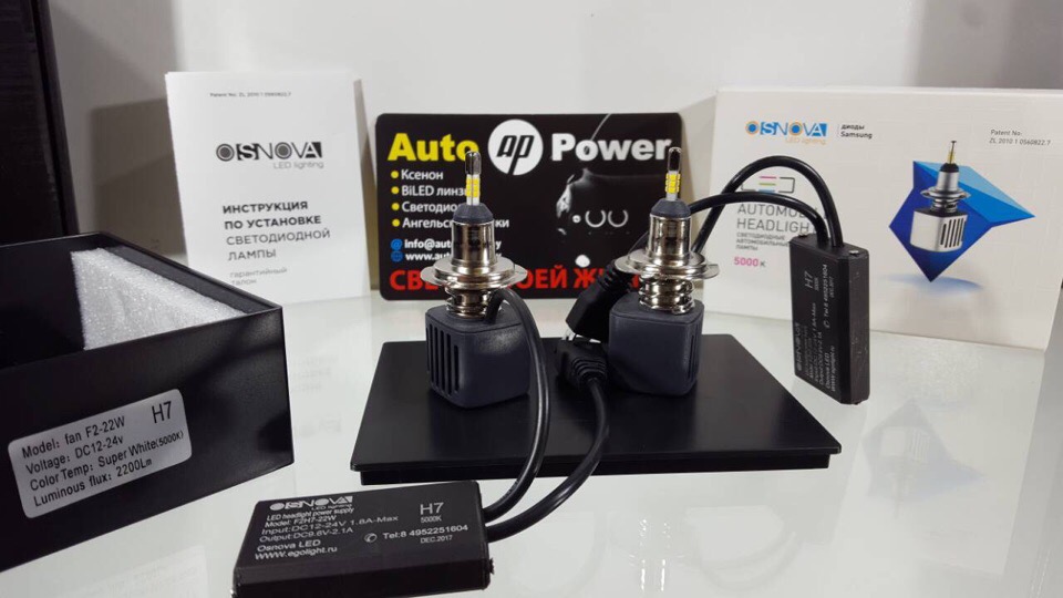 Ближний свет. Рассмотрим светодиодные лампочки AutoPower – Osnova - Samsung для LADA Vesta, на которые была осуществлена замена штатных галогеновых ламп H7. Они существуют двух видов на 22W и 26W. Данная лампочка работает на самсунговском чипе с активным охлаждением.